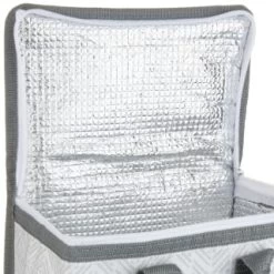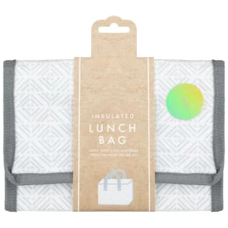 This foldable lunch bag keeps food cool and fresh, in a stylish design with grey handles.